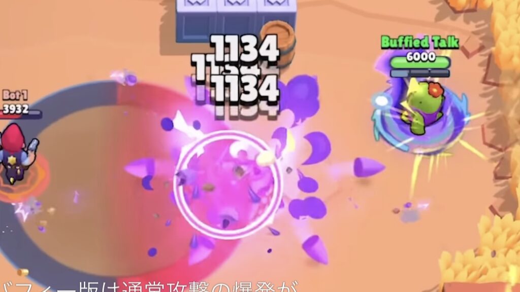 ハイパーチャージ中の通常攻撃の『爆発が2回』に増えます。