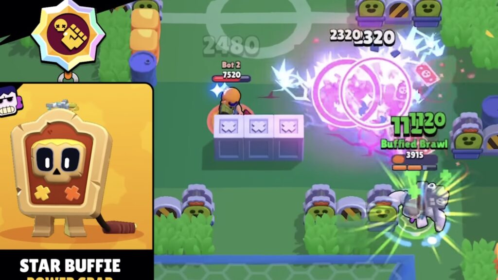 ガジェット、スターパワー、ハイパーチャージそれぞれにバフィーをつけることができ、キャラクターごとに3種類あります。