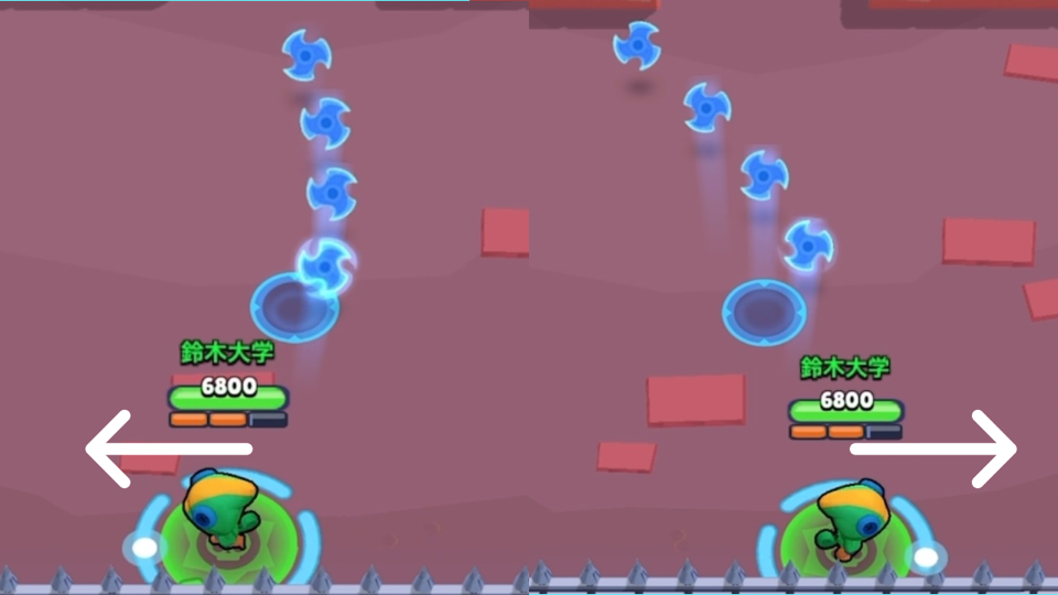 左に移動しながら撃つと弾がまとまり、右に移動しながら撃つとより拡散します。