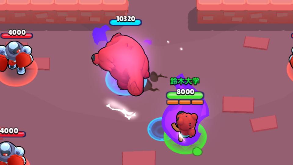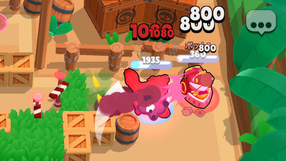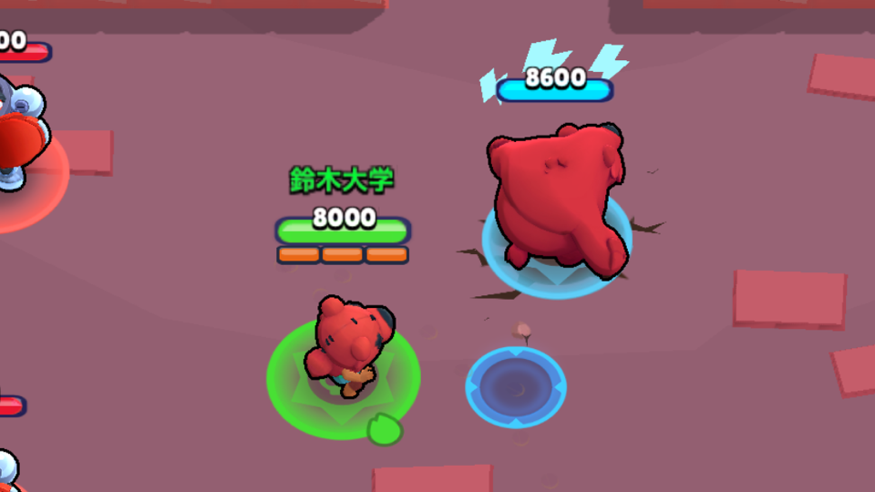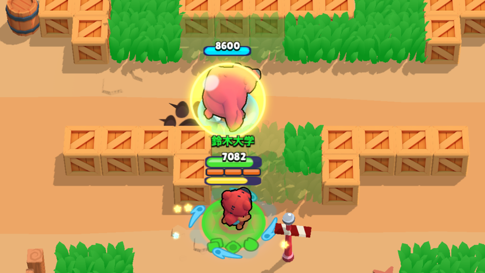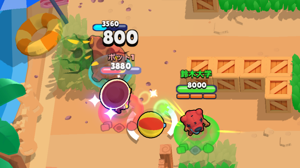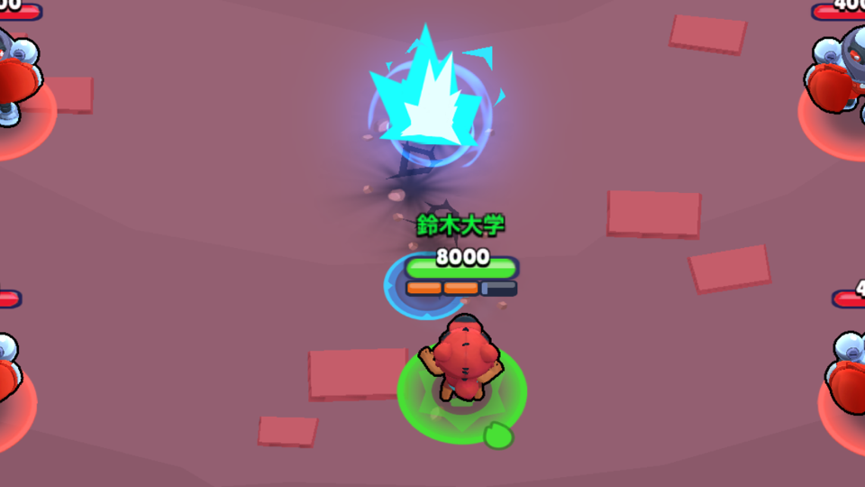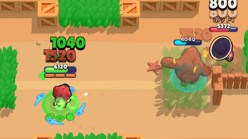 弾が大きいと壁際の攻防が有利になります。弾が半分壁を貫通する仕様を利用して壁ギリギリを狙って攻撃しましょう。